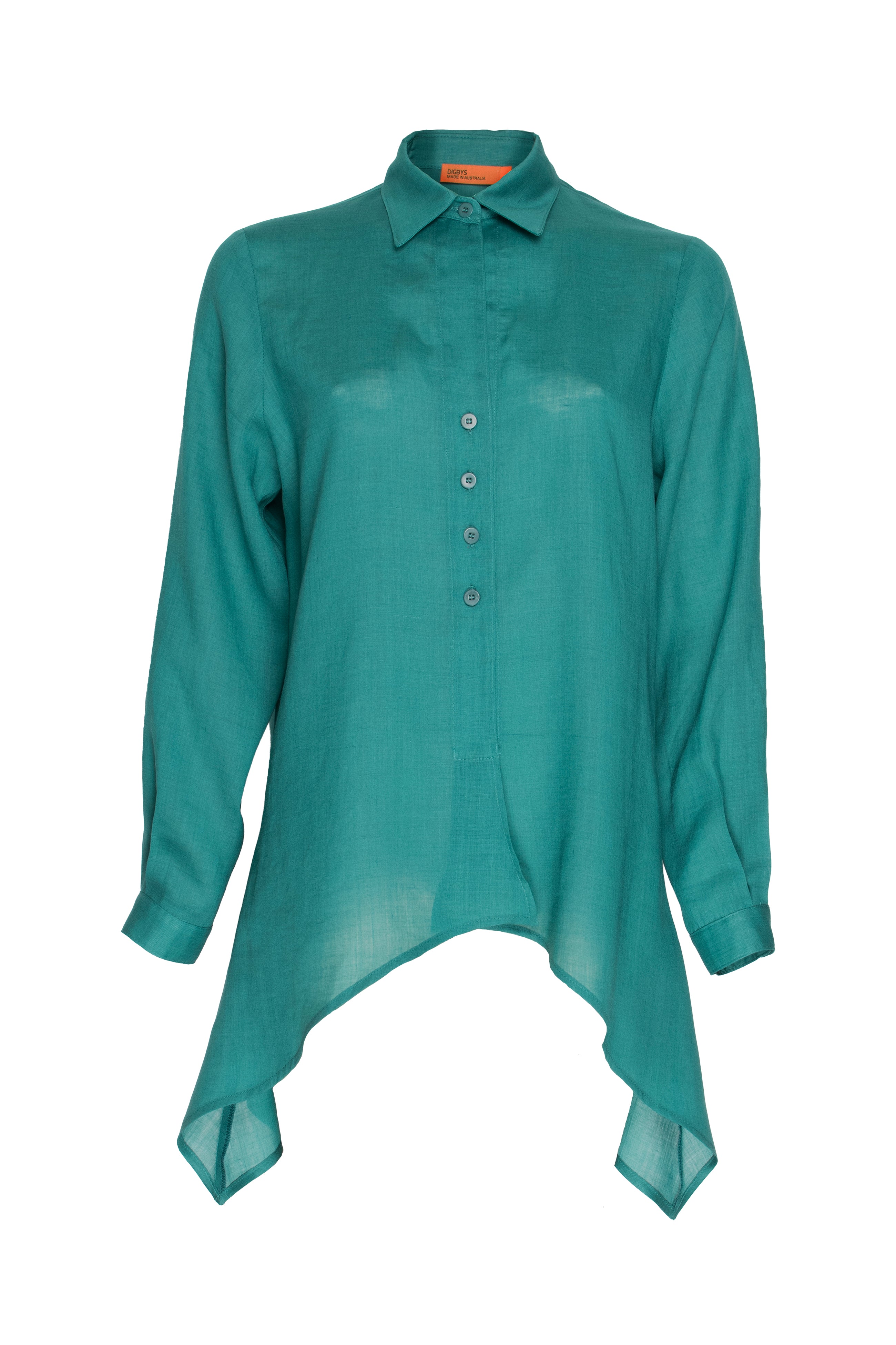 4 Button Uneven Hem Shirt - Verde Ramie 3403