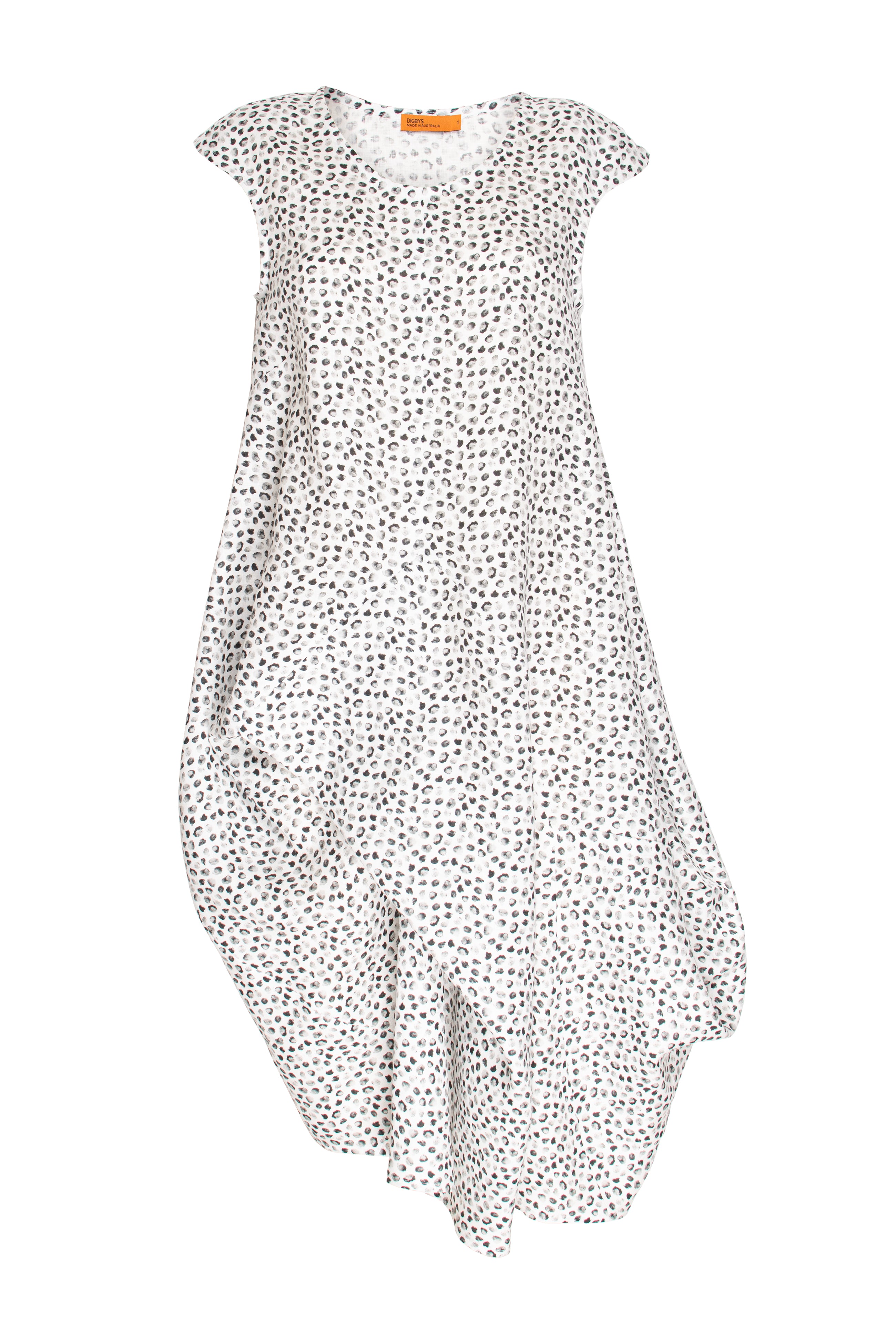 Tucked Cap Sleeve Dress - Charcoal Dots Linen 3418