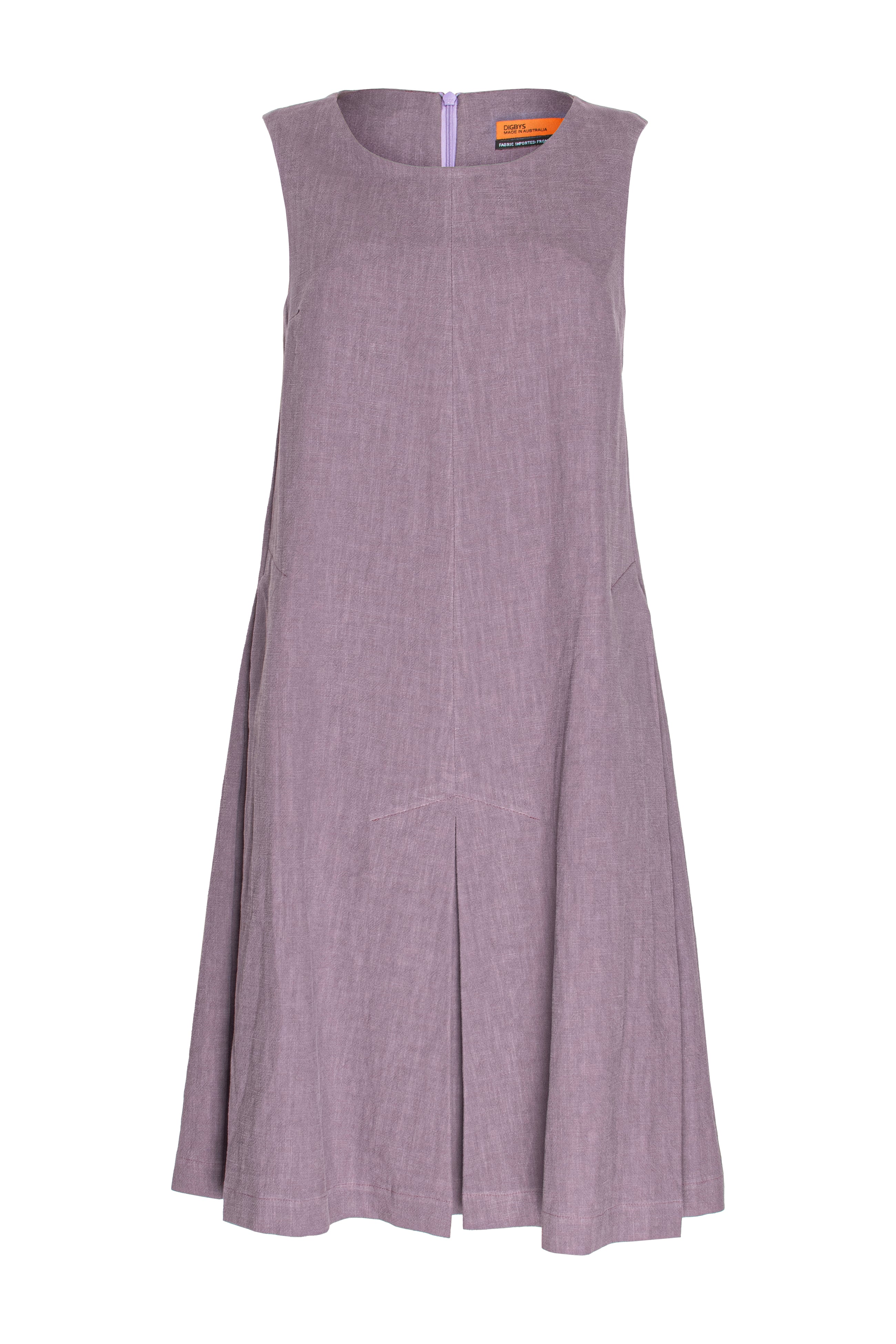 With an elegant round neckline and flattering fit this dress skims the waist falling to the knee or just below. Movement and style with pleats below the hip falling softly to the hem will reflect the texture and colour of this linen fabric. Dress it up with fabulous heels, ideal for corporate wear or with wear it casually with sandals.