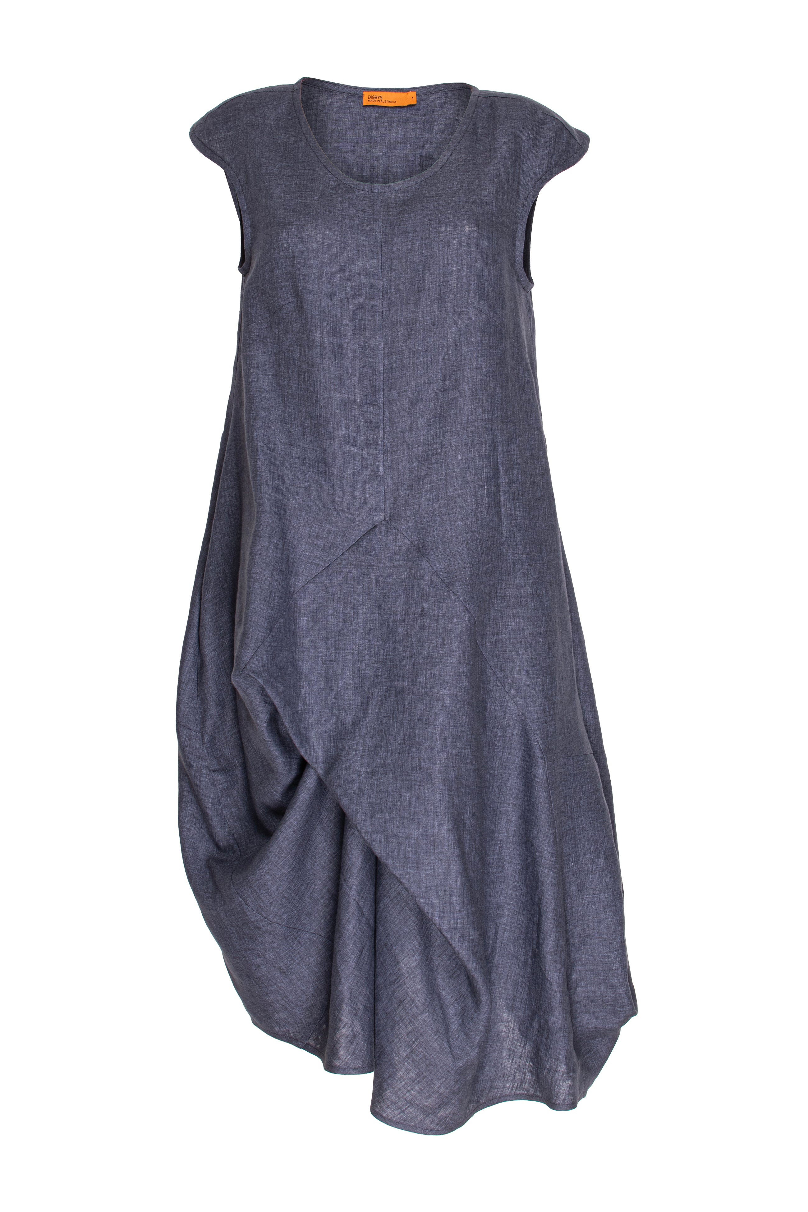 Tucked Cap Sleeve Dress - Charcoal Linen 3419