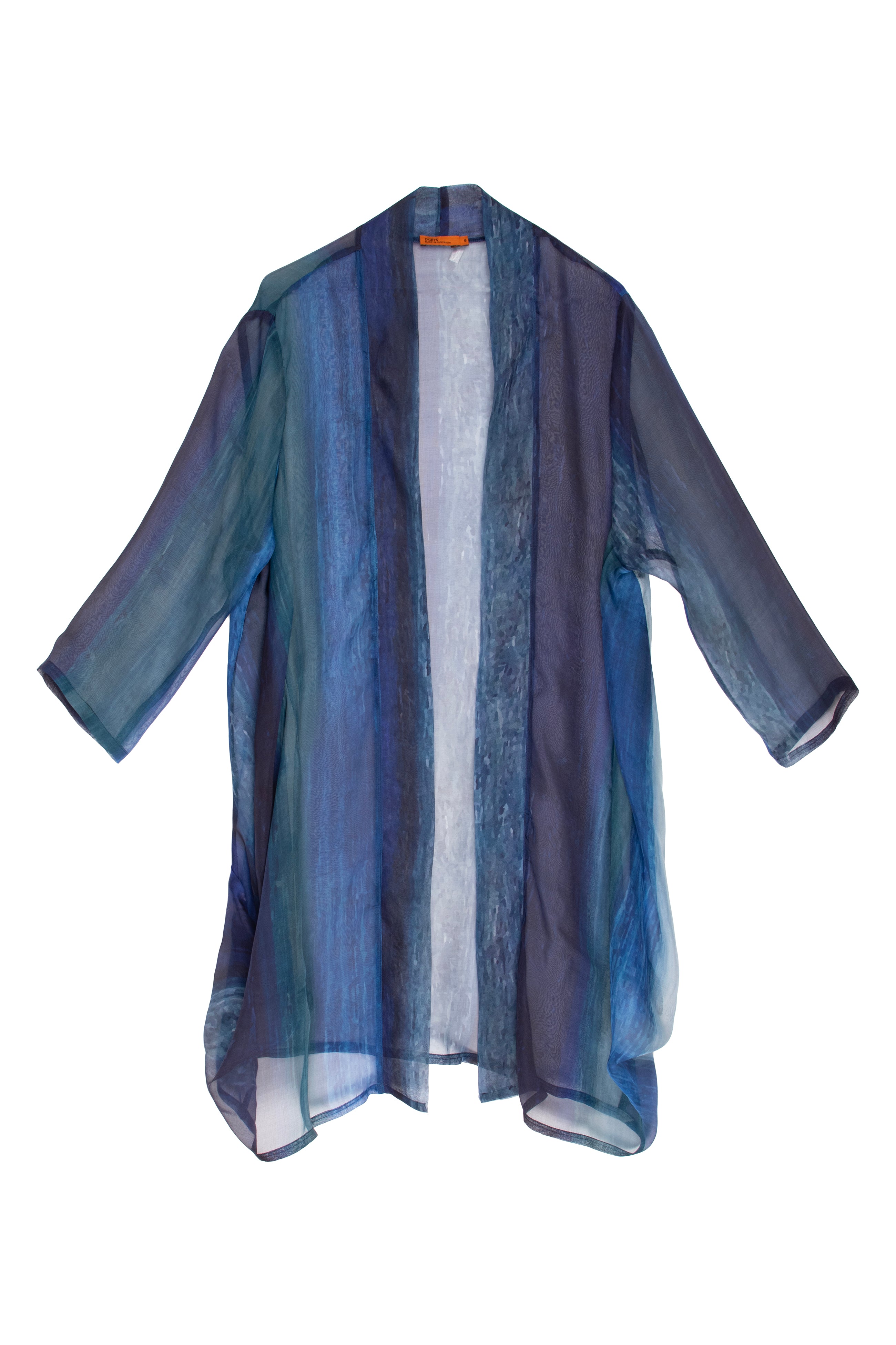 In stunning printed silk, this lightweight overpiece can be worn over almost anything for when you need that finishing piece. The range of colours in the print allow you to match this jacket over a variety of base colours. Whether for a special event or work, this style is the perfect cover up when you need a statement piece. Pair it with a simple top and pant for a laid back look, or wear it over a dress for a spectacular event outfit.