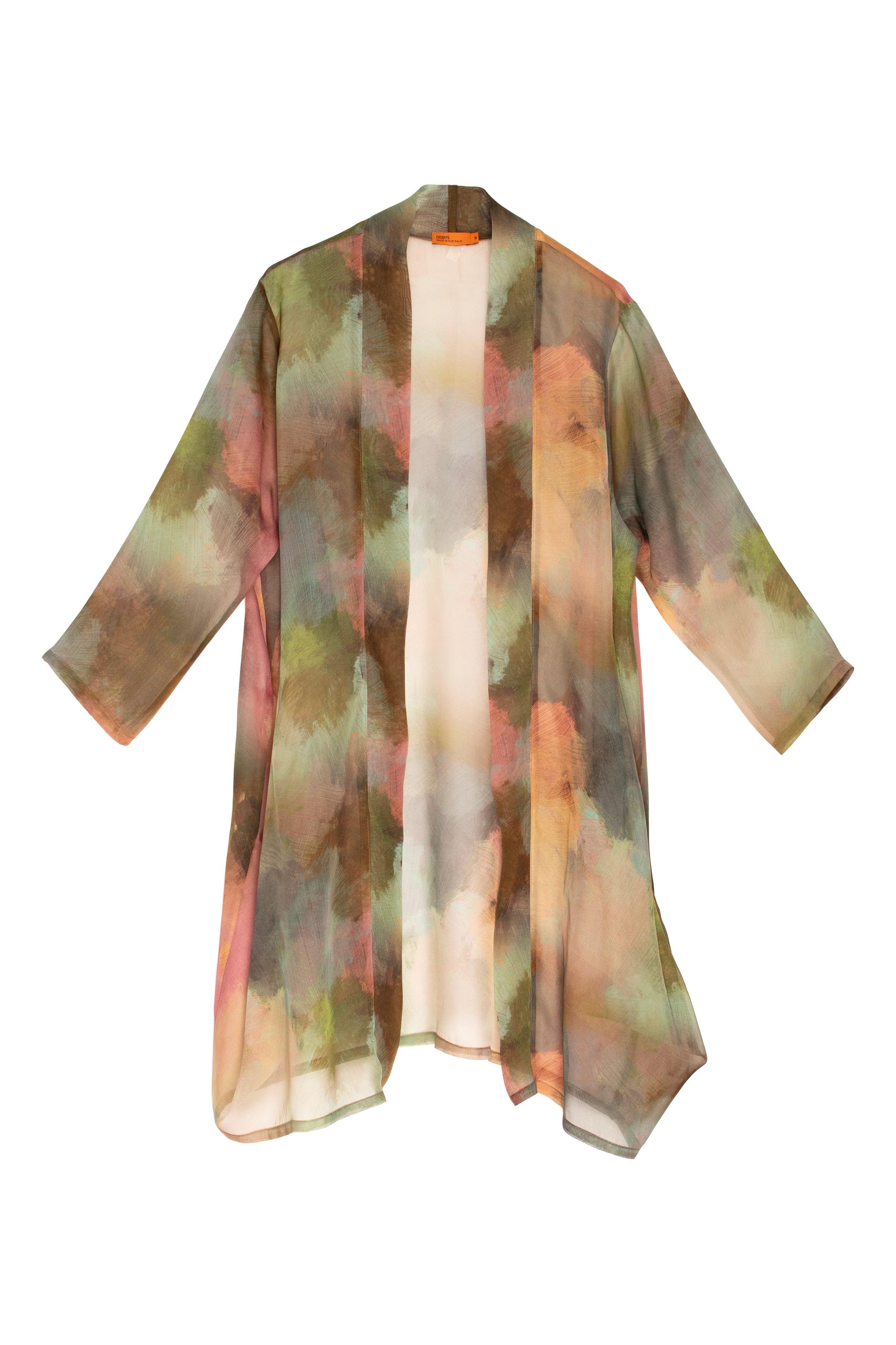 In stunning printed silk, this lightweight overpiece can be worn over almost anything for when you need that finishing piece. The range of colours in the print allow you to match this jacket over a variety of base colours. Whether for a special event or work, this style is the perfect cover up when you need a statement piece. Pair it with a simple top and pant for a laid back look, or wear it over a dress for a spectacular event outfit.