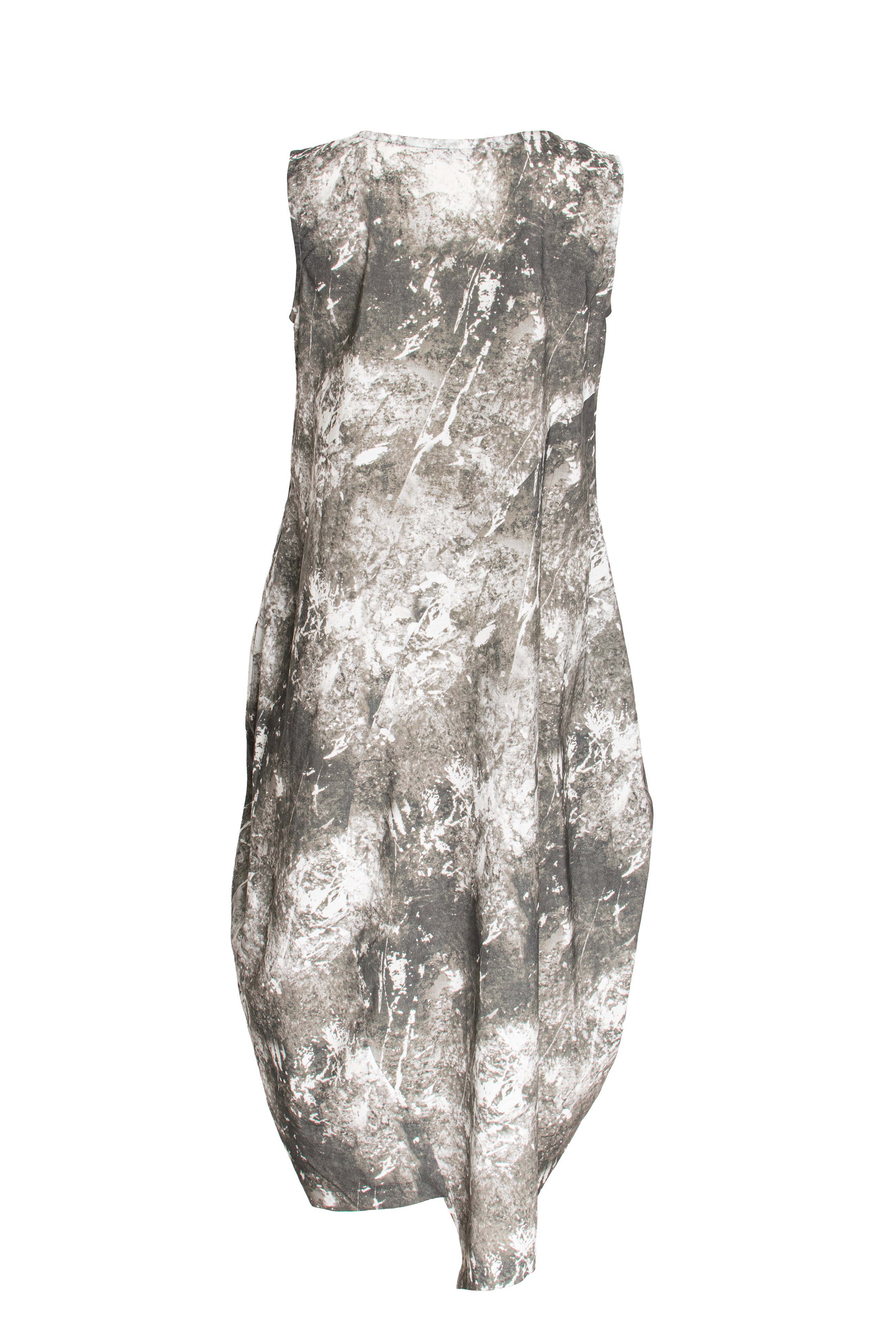Asymmetric Panel Singlet Dress - Dark Marble Print Cotton 3416